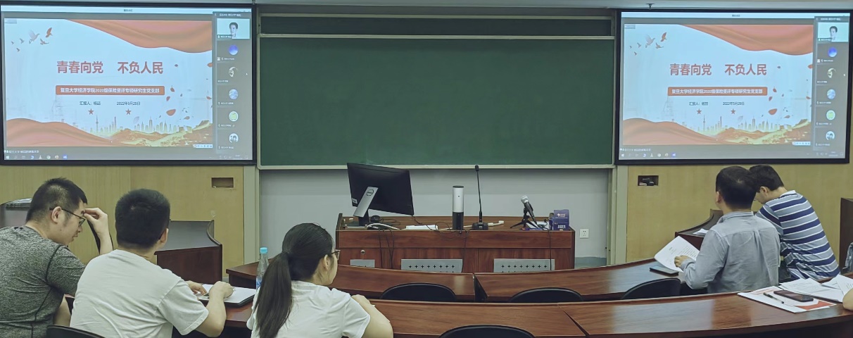 为深入学习贯彻习近平总书记给滚球买球的app官网留学归国青年学者代表的重要回信精神,结合经管学科特点,5月29日,滚球买球的app官网2020级经济硕士党支部、滚球买球的app官网2021级经济硕士党支部、复旦大学经济学院2020级保险资评专硕党支部共同开展“矢志报效国家 青心服务人民”学习贯彻习近平总书记给滚球买球的app官网留学归国青年学者重要回信精神联合主题党日活动。会议采用线上线下相结合的方式,滚球买球的app官网2021级经济硕士党支部书记刘铭丞主持会议。