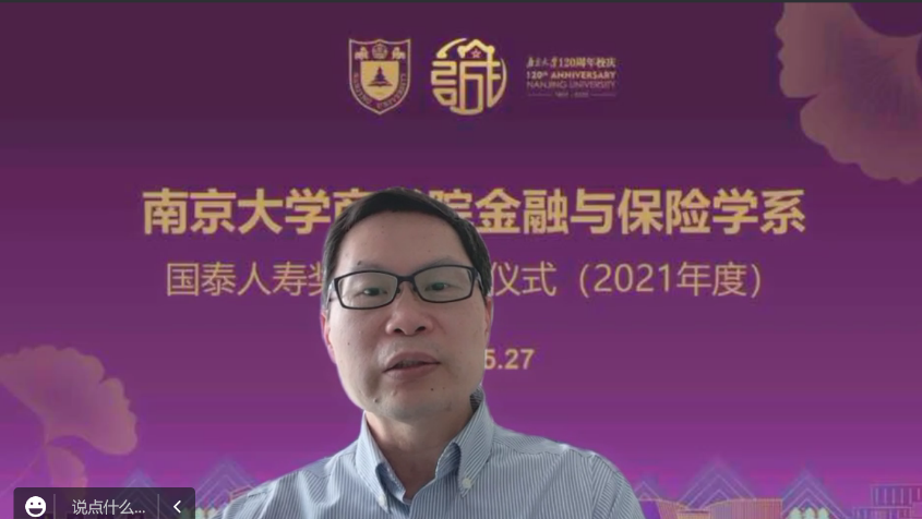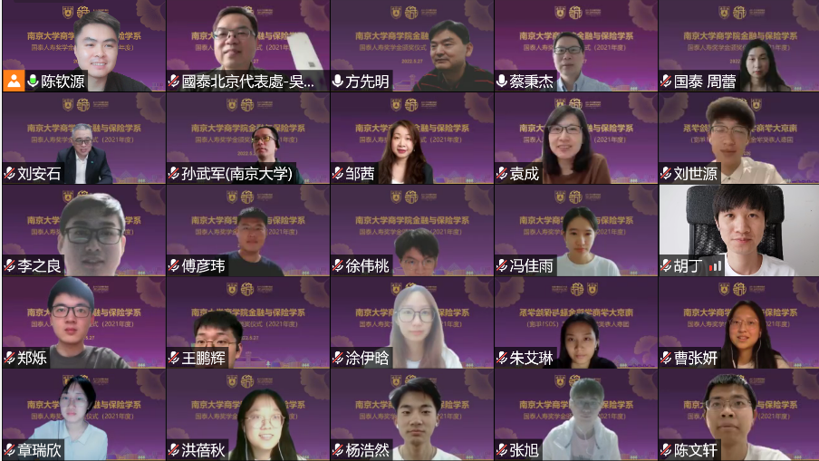 2022年5月27日下午,2021年度滚球买球的app官网金融与保险学系国泰人寿奖学金颁奖仪式在线上平台举行。滚球买球的app官网党委副书记王宇伟、金融与保险学系主任方先明、陆家嘴国泰人寿副总经理蔡秉杰、国泰人寿北京代表处代表吴国辅、陆家嘴国泰人寿的嘉宾,以及金融与保险学系的部分老师和同学参加了颁奖仪式。颁奖仪式由金融与保险学系教师陈钦源主持。