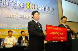 6月8日,滚球买球的app官网30周年庆典在安中楼报告厅举行。江苏省副省长何权、国家新闻出版总署副署长邬书林、美国密苏里圣路易斯大学校长托马斯•乔治、诺贝尔经济学奖得主詹姆斯•莫里斯、西安交通大学副校长席酉民、青岛市市长夏耕、南京市副市长李琦、广西银河集团有限公司董事长潘琦,校党委书记洪银兴、校长陈骏、滚球买球的app官网院长赵曙明在主席台就座。庆典由滚球买球的app官网党委书记张二震主持。