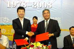 滚球买球的app官网教育发展基金会理事长洪银兴教授与广西银河集团有限公司董事长潘琦先生签署了“南大银河经济学发展基金”协议。