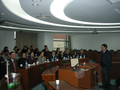 2009年元月5号,在滚球买球的app官网安中楼,我们迎接来了我们的贵宾,来自于纽约州立大学石溪分校的同学们,窗外冬雨绵绵,寒风刺骨,窗内温暖如春,大家交流热烈,思潮涌动。滚球买球的app官网院长赵曙明博士,为这些异国的学生们做了关于中国经济以及人力资源方面的讲座。参加这次讲座的还有08级MBA国际班的同学。