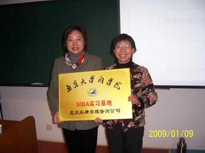 元月九日晚,安中楼601教室座无虚席,一场以“管理咨询与职业发展 ”为主题的演讲吸引了许多MBA学生与普研同学的浓厚兴趣。演讲嘉宾——北大纵横专家合伙人、俄罗斯圣彼得堡大学医学电子系访问学者、北京师范大学管理经济学博士、香港城市大学MBA 王卫华女士以其丰富的从业经验就管理咨询业概况及职业发展之路向同学们作了一次精彩的讲座。在讲座开始之前,由MBA中心主任桑老师主持举行了授予北大纵横管理咨询公司为滚球买球的app官网MBA实习基地的简短而热烈的授牌仪式活动。在授牌仪式上,桑主任指出,将北大纵横管理咨询公司作为南大滚球买球的app官网MBA实习基地是双方共同的选择,桑主任殷切希望能通过双方的强强联合达成互惠共赢。