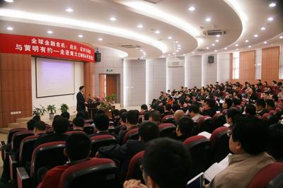 3月19日上午,由滚球买球的app官网EMBA教育中心主办的“与黄明有约——走进南大EMBA开放课堂”在苏州工业园区独墅湖高教区滚球买球的app官网研究生院成功举行。本次活动特邀国际经济学领域资深学者——美国康奈尔大学终身教授、CCTV《直击华尔街风暴》栏目特邀嘉宾黄明教授亲临现场,讲授此次金融危机所引发的启示、应采取的措施和对未来经济的展望。