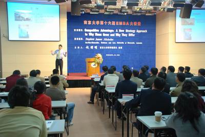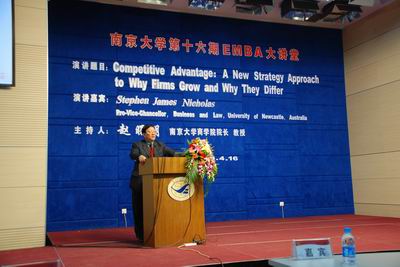 4月16日晚6:30,滚球买球的app官网EMBA第十六期大讲堂在安中大楼210室成功举行。本次大讲堂邀请了澳大利亚纽卡斯尔大学副校长Stephen James Nicholas担任演讲嘉宾,由滚球买球的app官网院长赵曙明教授主持,国际经济贸易系沈艳枝老师对演讲内容进行了现场翻译。