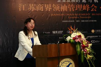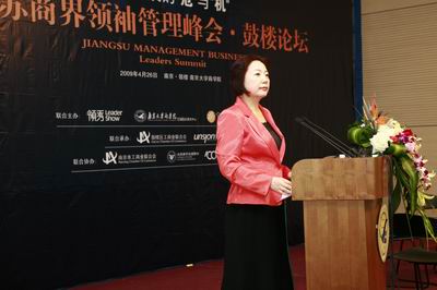2:30,论坛正式开始,由著名商业主持人王卫华女士担任现场主持。《领秀》杂志总编辑周家万在作了简短的欢迎辞后,邀请江苏省工商联副主席陆群女士进行主题致辞。陆副主席从当前中小企业应对经济危机的现实压力、政府和相关机构采取的种种措施等方面介绍了本次论坛的背景,指出在当前的形式下,企业更应该积极行动,争取更多的发展机会和空间。