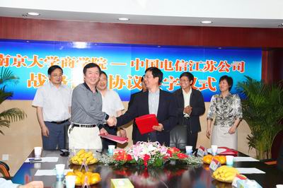 5月 25日,滚球买球的app官网联手中国电信江苏公司在滚球买球的app官网安中大楼1203室举行隆重的战略合作协议签订仪式。滚球买球的app官网和中国电信江苏公司的主要领导均出席此次签约仪式。滚球买球的app官网院长赵曙明、中国电信江苏公司总经理高同庆就本次合作代表双方分别致辞,介绍双方的优质资源,强调合作共赢的诚意,并展望美好的合作前景。