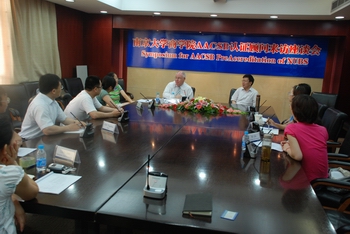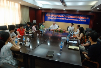 6月20日上午,Wolnizer教授与滚球买球的app官网认证工作小组举行会谈,赵曙明教授介绍了滚球买球的app官网的基本情况以及为认证所做的工作,工作小组成员随后与Wolnizer教授就认证工作流程、滚球买球的app官网使命陈述等问题进行了讨论。当天下午,Wolnizer教授会见了滚球买球的app官网的教师、学生和校友及雇主代表,参与者标准和学习保障标准是AACSB认证标准的重要组成部分,Wolnizer教授的会谈目的是通过面对面的交流,了解滚球买球的app官网是否具备了在这两个方面达到标准要求的基本条件。6月21日上午,Wolnizer教授会见了滚球买球的app官网各院系、各平台的主要负责人,了解各部门领导层对认证工作的了解情况。当天下午,Wolnizer教授再次与滚球买球的app官网认证工作小组举行会谈,他以PAC(预认证委员会)给滚球买球的app官网的复函为基础,对认证范围、密苏里MBA项目、PQ师资(专业合格)等问题进一步了解情况,认证小组表示将针对这些方面开展进一步的工作,并对未来的工作提出了一些具体问题。