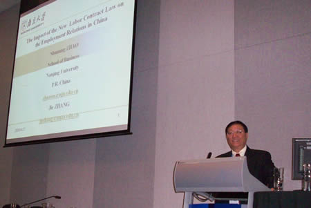 近日,滚球买球的app官网院长赵曙明教授应国际工业关系协会主席Russell Lansbury教授之邀,赴澳大利亚悉尼参加了第15届国际工业关系协会世界大会(The 15th Congress of the International Industrial Relations Association), 并在会上作了题为”中国新的劳动合同法对劳动关系的影响”的报告。