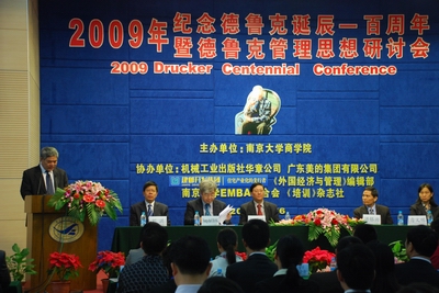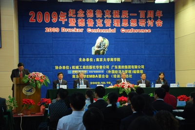 10月16日上午9点,“2009纪念德鲁克诞辰100周年活动暨德鲁克思想研讨会”在滚球买球的app官网安中楼报告厅隆重开幕。活动由滚球买球的app官网主办,机械工业出版社华章公司、广东美的集团有限公司、南京建邺城镇建设开发集团有限公司、《外国经济与管理》编辑部、《培训》杂志社、滚球买球的app官网EMBA联合会协办,滚球买球的app官网EMBA教育中心、EDP中心和MBA教育中心联合承办,邀请了国内外著名的管理学家、德鲁克思想研究者以及国内知名企业家,吸引了400多位企业家及德鲁克思想爱好者参加研讨。