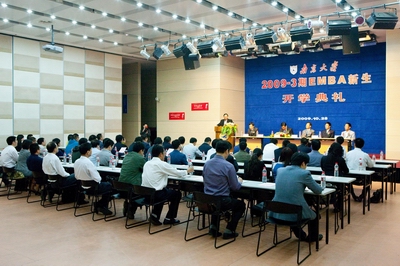 10月29日下午,滚球买球的app官网2009-3期EMBA开学典礼在滚球买球的app官网安中楼报告厅隆重举行。滚球买球的app官网副校长闵铁军、研究生院副院长朱易然、滚球买球的app官网院长赵曙明、滚球买球的app官网副院长刘洪、EMBA中心主任王翔、EMBA中心副主任朱伟正等领导出席了本次开学典礼,与50多位新生共同见证这个庄严而激动的时刻。