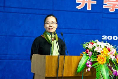 2008-1期学员孙海琴代表老学员向新生们的加入表示欢迎和祝贺,与新生分享EMBA的学习体会。“学海无涯,光阴苦短”,她希望2009-3期的学员能够珍惜这个学习的机会,加强与同学、校友的联系,在南大EMBA为大家搭建的平台上努力开拓出自己的天地。