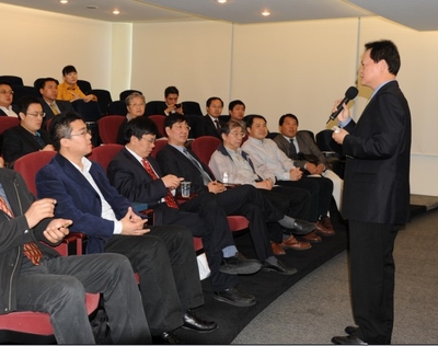 在中央大学,该校副校长李诚教授对同根同源同宗的滚球买球的app官网访问团表示热烈的欢迎,希望两校在学术、科研、教学等领域进行深入交流,对EMBA教育也可以紧密合作。李校长还带领访问团参观中央大学美丽的校园,并亲自担任解说员介绍中央大学悠久的历史和辉煌的教学成果。此外,中央大学管理学院EMBA执行长林文正详细的该校EMBA的办学特设和成功经验。访问团成员还饶有兴趣地参观了该校EMBA教研室、图书室,并体验了ERP课程的授课方法。