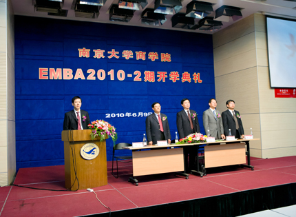 6月9日下午,滚球买球的app官网2010-2期EMBA开学典礼在滚球买球的app官网安中大楼报告厅隆重举行。滚球买球的app官网副校长闵铁军、研究生院副院长朱易然、滚球买球的app官网院长赵曙明、党委书记张二震、EMBA教育中心主任王翔等领导出席了本次开学典礼。