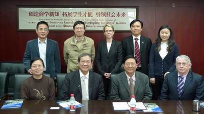 3月14日上午,美国密苏里大学堪萨斯城分校一行7人来访,包括布劳克管理学院院长Teng-kee Tan博士、学生事务副院长Kami Thomas博士、金融系系主席兼海外留学项目主任Fred H. Hays 博士、电子商务副教授兼海外留学项目负责人Sidne G. Ward博士、企业高级培训主任Kimberly Young女士、中国与亚太区项目主任Wilson  Ang先生、中国与亚太区项目经理Rachel Zhu女士。