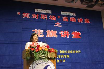 宝女士的演讲引起了观众的共鸣,场下不时响起热烈的掌声。讲座的最后,宝女士和花旗南京分行的姚行长还和观众们进行了现场互动,讲座在轻松愉快的气氛中结束。