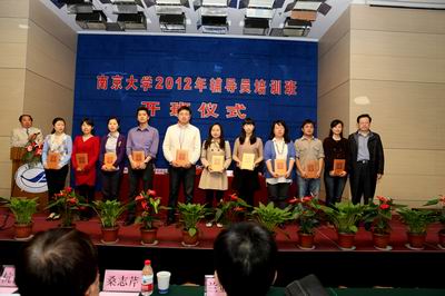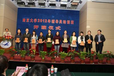 4月19日上午,我校2012年辅导员培训班开班仪式在鼓楼校区举行。校党委书记洪银兴出席仪式并作首场辅导报告。校党委副书记朱庆葆,党委常委、组织部长王志林,学工部、研工部、心理中心、就业中心有关负责同志,以及各院系学工办主任、辅导员共100余人参加了本次仪式。开班仪式由党委学生工作部部长刘源主持。王志林部长宣读了《滚球买球的app官网关于表彰学生工作先进集体和先进个人的决定》。洪银兴书记和朱庆葆副书记分别为10家“学生工作先进集体”和20名“优秀辅导员”颁奖。滚球买球的app官网学生工作办公室获得“学生工作先进集体”称号,周媛、温馨获得“优秀辅导员”。滚球买球的app官网辅导员周媛代表获奖辅导员上台发言。