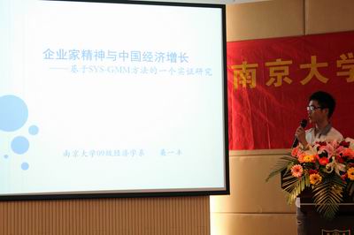 桑一丰同学就一等奖获奖论文《企业家精神与中国经济增长》进行了现场陈述