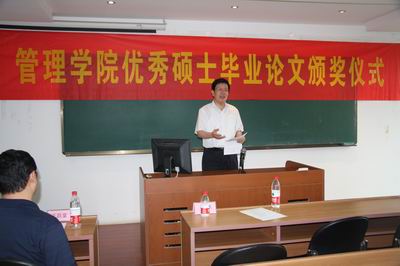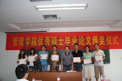 为加强对滚球买球的app官网硕士研究生学术能力的综合培养,进一步提高学生学术论文的写作水平,滚球买球的app官网管理学院首届优秀硕士毕业论文颁奖仪式于2012年6月15日在安中楼602教室隆重举行。仪式由滚球买球的app官网管理学院副院长王跃堂教授主持,管理学院院长刘洪教授、副院长刘春林教授、管理学院办公室主任李远本老师、滚球买球的app官网辅导员温馨老师以及管理学院教务员温燕娜老师应邀出席。