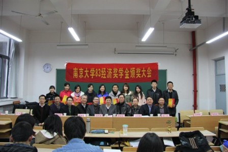 2012年11月22日下午,“83经济”奖学金颁奖仪式在仙2-109举行,滚球买球的app官网常务副院长范从来教授、经济学院副院长安同良教授、滚球买球的app官网党委副书记吕亚红老师以及江苏海外企业集团总裁黄宏亮、鸿意地产发展公司董事长陶炜等八名83级经济系校友参加了颁奖仪式,颁奖仪式由吕亚红老师主持。