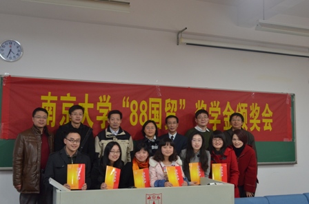 2012年12月14日16:00,滚球买球的app官网“88国贸”奖学金颁奖仪式在仙林校区2区310教室举行。APMG Group (BVI)LLC总裁陈旻 、江苏弘业股份有限公司爱涛轻工品公司总经理黄林涛等校友代表为获奖同学颁奖,滚球买球的app官网前党委书记刘厚俊、党委副书记吕亚红、国贸系主任马野青、国贸系副教授冯帆、辅导员周媛、陈力立、张金玲出席此次颁奖仪式。