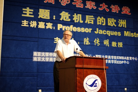 5月14日晚,欧洲著名经济学家雅克·米斯特罗(Jacques Mistral)教授在安中楼报告厅作了题为“危机后的欧洲”的主题演讲,解读了欧洲债务危机的始末和欧元区的明天。此次讲座为滚球买球的app官网“商学名家大讲堂”系列讲座之一,由滚球买球的app官网中荷国际工商管理教育中心举办,滚球买球的app官网党委书记陈传明教授主持。