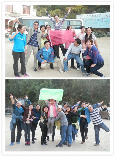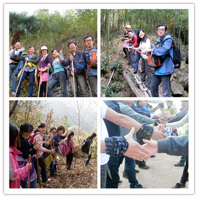 清晨,山间的空气清新而湿润,大家在培训师的带领下开始向山顶进发。狭窄的碎石路,砍倒的竹木杂置,满是露水的落叶……凡此种种加大了登顶的难度。大家手持竹杖,遇到险滑的路段,大家前后相牵,互相鼓励,努力走稳每一步。正是这种鼓励和坚持让我们品尝到了登顶的浓浓喜悦,陡峭的山顶就这样被征服。