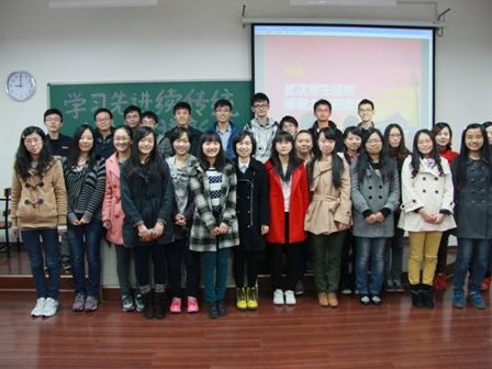 在继续深入学习贯彻党的十八大精神的背景下,为配合党的群众路线,向党员同学传递“党在我身边”的正确信念,2013年11月13日,滚球买球的app官网2011级本科经济支部全体党员同学开展题为“学习先进续传统,自我完善谱新篇”的党日活动。