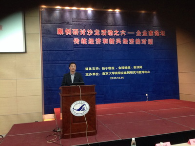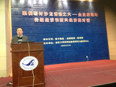 12月14日下午两点,由滚球买球的app官网案例中心主任史有春教授主持的企业家论坛开启了对传统经济与新兴经济探讨。滚球买球的app官网党委书记陈传明教授为此次论坛致辞。江苏苏美达集团伊顿纪德品牌总经理陈忠、江苏享佳健康管理有限公司董事长肖俊方、美丽传说股份有限公司执行董事、首席执行官孙锁军就论坛主题做了主题演讲。