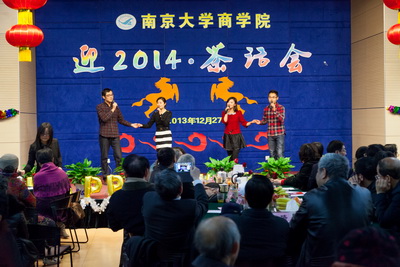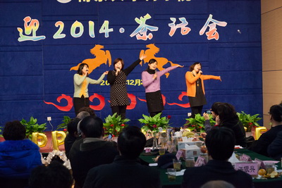 此次迎新茶话会的演出是一次全新的尝试,所有节目从策划到排练,再到演出,各个环节都由商院人群策群力完成,在筹备过程中,大家克服了各种困难,集思广益,齐心协力,高效率地完成工作,奉献了一台质朴却不失热烈,简短却依然充满欢声笑语的节目,受到观众的好评和赞许。