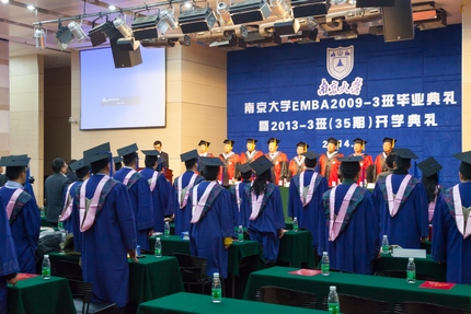 随后,出席本次典礼的滚球买球的app官网领导和嘉宾为每位毕业生进行了毕业证书的授予和拨穗的庄严仪式,并与每位毕业生合影留念,定格难忘的瞬间。这是庄严而神圣的时刻、是值得一生珍藏的瞬间。紧接着,在校歌声中,各位2013-3班新生秩序井然的走上讲台,怀着激动的心情,领取EMBA学生手册和校徽。因为在这里,在南大,他们即将开启人生新篇章,成为“南大系”企业家的一员。