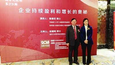 2014年3月16日,由学之旅企业家同学会主办,中国管理现代化研究会组织行为与人力资源管理分委员会、滚球买球的app官网战略人力资源管理研究所、扬子晚报、南京思谋管理顾问有限公司协办的第79期德鲁克论坛在南京金丝利喜来登酒店五楼江海缘举行。本次论坛由滚球买球的app官网名誉院长赵曙明教授主持,特邀华南理工大学工商管理学院教授、新希望六和股份有限公司联合董事长兼首席执行官陈春花博士担任演讲嘉宾。此次演讲主题为“企业持续盈利和增长的奥秘——关注经营的本质”。五星控股董事长汪建国等近300位优秀企业家以及滚球买球的app官网多位师生参加了此次论坛。
