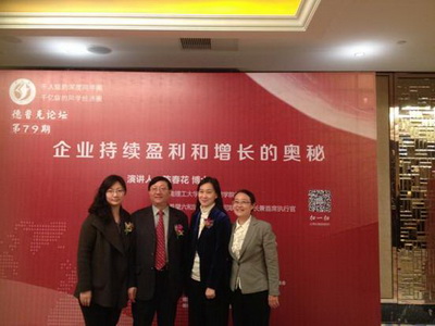 在德鲁克论坛的最后,陈春花教授就大家提出的问题一一做出了详实而精彩的解答。关于如何建立利益共同体的问题,她认为建立利益共同体首先要求企业愿意同价值相关者分享利益;其次,企业要有要有足够的获利能力;最后,企业要与价值相关者建立信息交流平台,随时共享信息和技术等。第79期德鲁克论坛在大家热烈的掌声中落下了帷幕,陈春花教授对企业持续盈利和增长因素的深刻剖析,给在座的企业管理人员传授了中国企业发展常胜之道,为大家带来了企业经营的新思路。