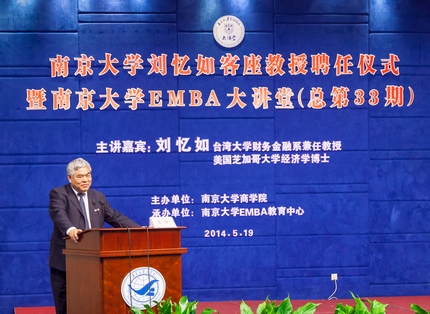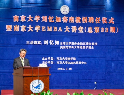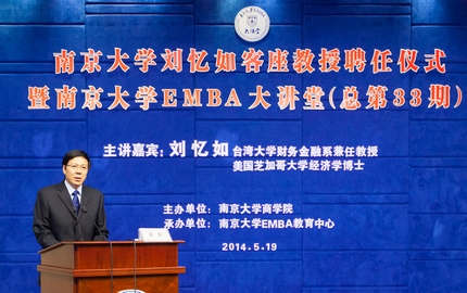 2014年5月19日下午,滚球买球的app官网刘忆如客座教授聘任仪式暨滚球买球的app官网EMBA大讲堂在安中大楼210报告厅顺利举行。台湾大学财务金融系兼任教授、美国芝加哥大学经济学博士刘忆如教授受聘成为滚球买球的app官网的客座教授并做客第33期滚球买球的app官网EMBA大讲堂,作了题为《金融改革创新的机会和风险》的专题演讲。