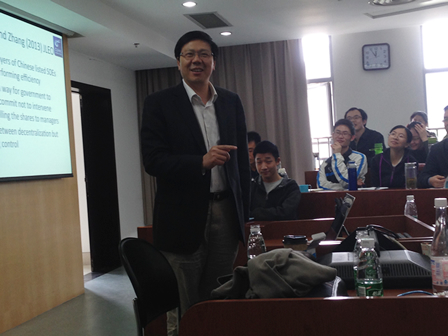 学术报告中,黄教授提纲挈领,首先强调要夯实理论基础,结合新制度经济学、社会学、政治学等多学科视角,寻求构建一个包含“国家制度层面—市场层面—公司层面”的完整中国公司治理研究理论框架,接着回顾了一些经典文献和著作,具体阐述了政府与企业发展间的互动关系,并从社会组织学视角出发,阐述了社会网络在经济社会发挥的作用机理,提出了许多值得研究的未来研究问题。