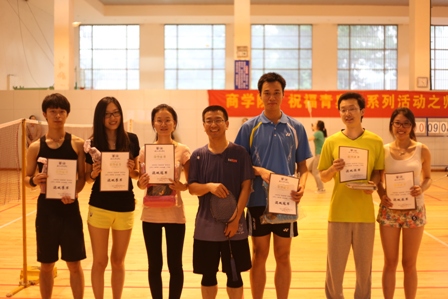 最精彩的要数男单比赛,王力骏、蒋柏平和高小春脱颖而出进入决赛,全场观众围观,比赛达到了高潮,最终王力骏力压群雄,3:0轻松夺冠。冠军是会计学的王力骏,亚军是企管的蒋柏平,季军是金融学硕的高小春。