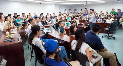 本次校友返校日的“重头戏”还要数“微博达人”——老猫教授(茅宁教授)的讲座。慕名前来听讲的中荷学子都要将活动现场挤爆了,大家宁愿席地而坐也要聆听茅教授的讲座。