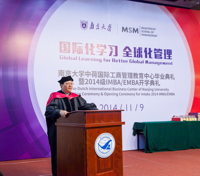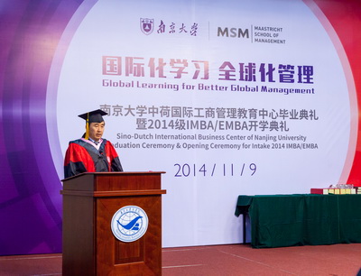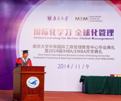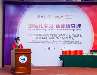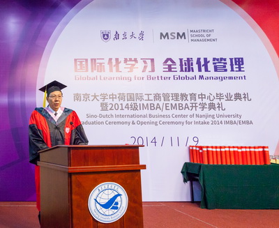 11月9日下午,滚球买球的app官网国际MBA中心毕业典礼暨2014开学典礼在安中大楼210报告厅隆重举行。出席典礼的有:滚球买球的app官网副校长杨忠教授;滚球买球的app官网校长助理、滚球买球的app官网常务副院长范从来教授;滚球买球的app官网人力资源处副处长李晓蓉副教授;滚球买球的app官网学科处副处长冯帆副教授;滚球买球的app官网名誉院长赵曙明教授;滚球买球的app官网党委书记陈传明教授;滚球买球的app官网副院长、管理学院院长刘洪教授;滚球买球的app官网副院长裴平教授;管理学院副院长王跃堂教授;工商管理系茅宁教授;工商管理系主任徐志坚教授;人力资源管理学系主任张正堂教授;人力资源管理学系副主任,蒋春燕教授;工商管理系张骁副教授;产业经济学系巫强副教授;此外还邀请到一批来自中国欧盟商会、荷兰贸易促进会、福特公司、各大银行等金融机构、江苏省MBA联合会等单位的重量级嘉宾和杰出校友出席活动,与所有毕业生及2014级新生共同庆祝具有纪念意义的一刻。