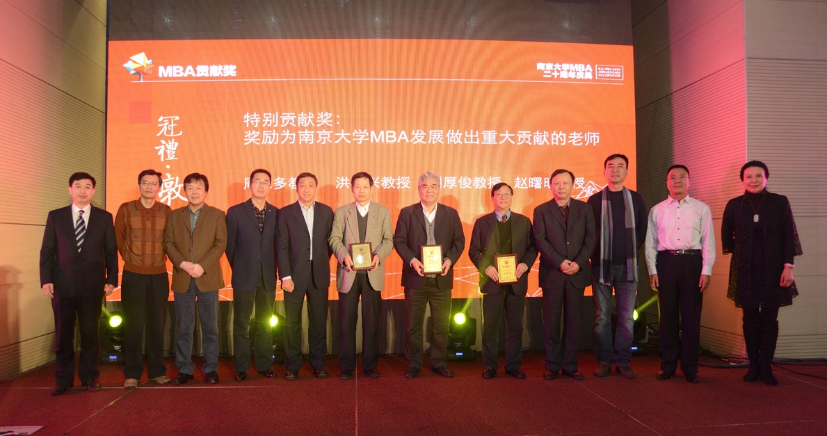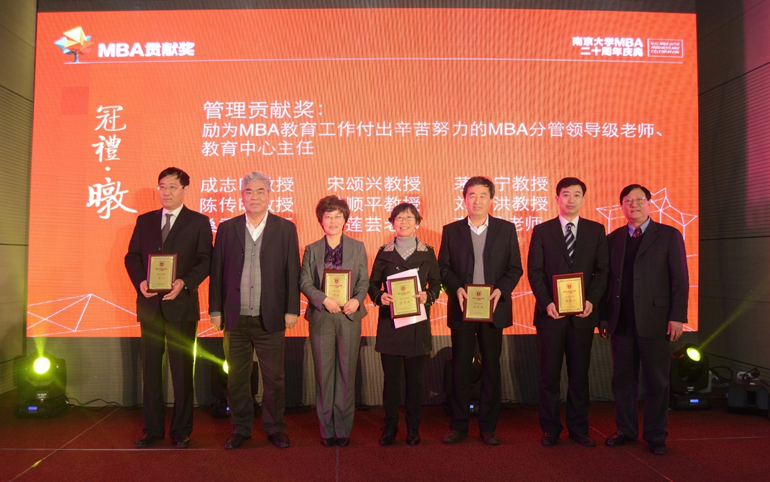 第二项议程是滚球买球的app官网MBA奉献奖颁奖仪式,由滚球买球的app官网党委书记陈传明教授宣读名单。首先是奖励为滚球买球的app官网MBA发展做出重大贡献老师们的“特别贡献奖”:周三多教授、洪银兴教授、刘厚俊教授、赵曙明教授荣获此殊荣。奖励二十年来较早并持续为MBA授课、指导论文的34位老师获得“教学贡献奖”。奖励9名为MBA教育工作付出辛苦努力的MBA分管领导级老师、教育中心主任“管理贡献奖”。为多次给MBA学生提供实战指导、帮助面试和答辩的优秀兼职导师颁发“兼职导师贡献奖”。