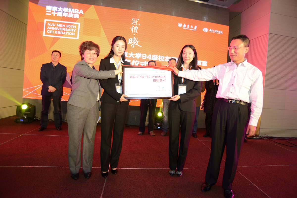 第四项议程是滚球买球的app官网94级校友回馈母校教室冠名仪式。94级校友们与MBA教育中心李晶主任一起为教室揭牌,94级张世强校友代表第一届MBA学员发言,提出了以他们为基石,望南大MBA越来越好的祝愿。
