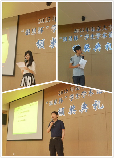 滚球买球的app官网副院长刘洪教授主持颁奖礼,他诙谐但不失隆重地介绍了出席典礼的嘉宾,接着颁奖典礼正式开始,首先陈传明书记向各位同学介绍了“银星杯”论文竞赛的历史并宣读了颁奖决定。在喜气洋洋的背景音乐声中,新人奖、三等奖、二等奖、一等奖得主代表分批走上奖台领取证书与奖品并与洪老师合影留念,典礼走向了第一波高潮。