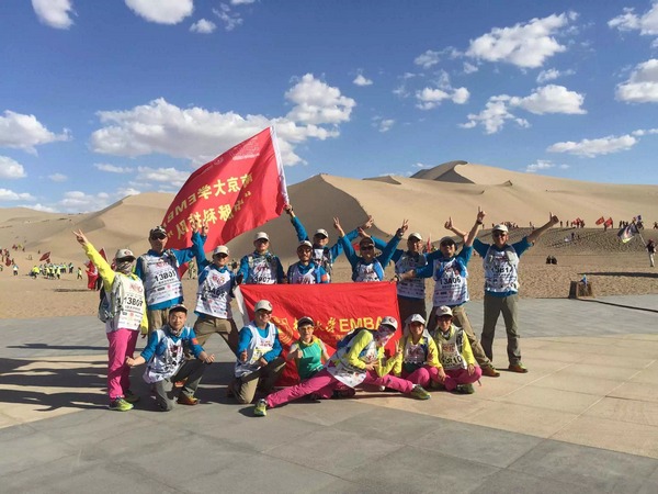 此次正式参赛,由滚球买球的app官网副院长裴平教授亲自带队,EMBA教育中心徐宁主任现场助威, “中脉科技队”25名队员竭尽全力,为南大校庆献礼而奔跑,为精彩的人生加油,出色地完成了4天3夜的戈壁穿越,心灵得到了洗礼,人生得到了升华。