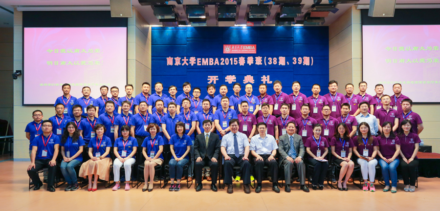 2015年5月29日上午滚球买球的app官网EMBA2015春季班(38期、39期)开学典礼在安中大楼鸿意报告厅隆重举行。滚球买球的app官网校长助理范从来教授、研究生院副院长朱易然教授、滚球买球的app官网执行院长沈坤荣教授、滚球买球的app官网院长助理韩顺平教授等领导出席典礼。