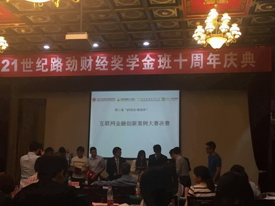 “21世纪·路劲杯”互联网金融创新案例大赛,由中国金融四十人论坛联合北京大学国家发展研究院、21世纪传媒、香港路劲集团于2013年共同发起,旨在鼓励全国高校大学生对互联网金融机构商业模式的原创性研究和分析,为原创idea提供展示平台。第三届“21世纪·路劲杯”?互联网金融创新案例大赛共收到来自全国15个省市,40多所高校的76件参赛作品,参赛人数超过400余人,经过逐轮比拼,最终有6组作品入围决赛。决赛评审嘉宾有:北京大学国家发展研究院副院长、北大互联网金融研究中心主任黄益平、路劲集团董事局主席单伟豹、北京大学国家发展研究院教授沈艳、全国知名网贷平台人人贷创始人杨一夫等。