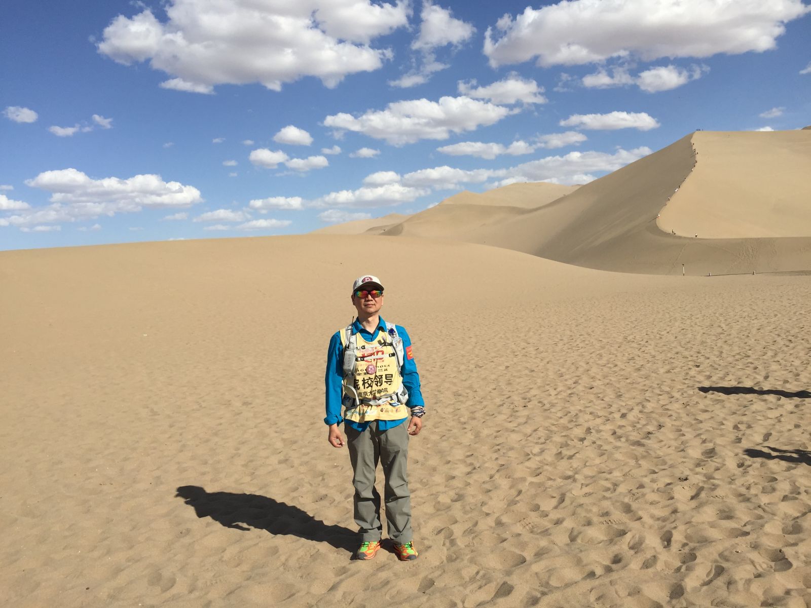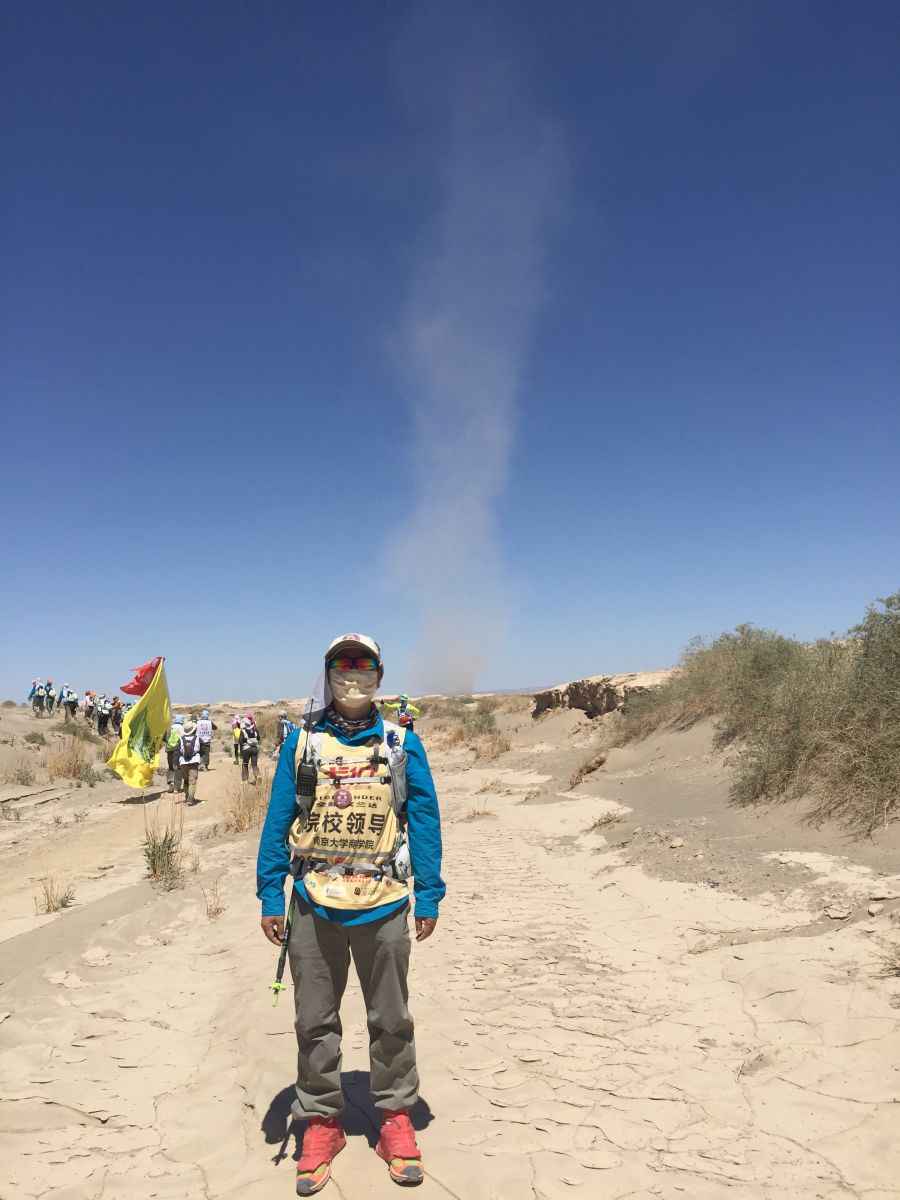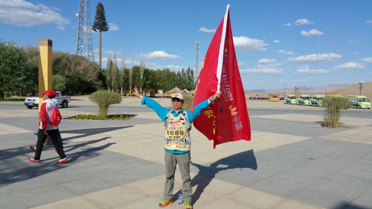 偶尔经过院长助理韩顺平教授的办公室,我被室内的树根雕所吸引。韩教授说那是从“第九届玄奘之路滚球买球的app官网戈壁挑战赛”(简称“戈九”)带回的胡杨木。我读过“胡杨礼赞”这篇散文,知道在高温和干燥的戈壁滩上,只有胡杨树坚强挺拔,千年不朽。我上网查看历届“戈壁挑战赛”的视频,许多院校的旗帜在戈壁的天空飘扬,它们的参赛队员个个英姿勃发,而南大刚组队参加“戈九”,而且是观摩,因此没有组委会的正式报道。韩教授认为,南大应该成为“第十届玄奘之路滚球买球的app官网戈壁挑战赛”(简称“戈十”)的正式参赛队,希望我大力支持。几天后,筹备“戈十”的两位EMBA同学到我办公室,谈了他们参赛的决心和所做的准备,并邀请我参加“戈十”。没有经过规范的体能锻炼,几年前就出现高血压等“老年问题”,而且教学科研和行政管理的工作也比较繁重,我一时非常为难。面对EMBA同学期待的目光,想到在红尘滚滚、物欲横流的社会背景下,同学们能“放下一切”,为南大奔跑,为人生加油,我的内心被触动了。同时,作为南大教师的后代,我3岁上南大幼儿园,17岁毕业于南大附中,24岁从南大经济学系毕业后就留校工作至今,“南大元素”已经融入我的生命。就在办公室,我几乎“不计后果”的接受了EMBA同学的邀请。我参加“戈十”能够增加参赛队的“官方”色彩,有利于组建队伍、鼓舞士气、筹集资金和物资。更重要的是,作为向母校113周年华诞的献礼,我们一定要让滚球买球的app官网的旗帜飘扬在戈壁挑战赛的天空。