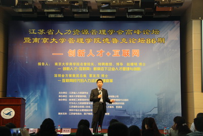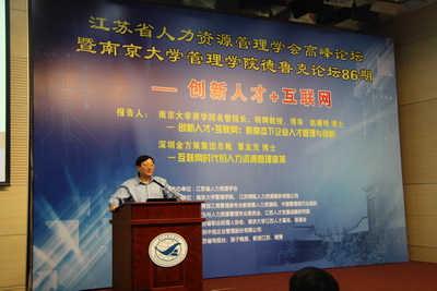 为进一步探讨推进创新人才与互联网研究,促进江苏企业人才管理与人力资源管理水平,为企业加快转型升级、推动创新发展提供强有力的支撑,2015年7月9日上午,江苏省人力资源学会组织召开了“江苏省人力资源学会高端论坛暨滚球买球的app官网管理学院第86期德鲁克论坛, 这次论坛由滚球买球的app官网管理学院、 江苏领航人力资源服务有限公司承办,由教育部工商管理类专业教指委人力资源组、中国管理现代化组织行为与人力资源管理专业委员会、江苏人才发展战略研究院、江苏省职业经理人协会、滚球买球的app官网江苏人才基地、思谋会、深圳中旭企业管理股份有限公司等单位协办, 媒体支持单位有江苏省电视台、扬子晚报、新浪江苏、微博等。