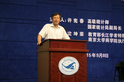 2015年9月8日晚,“滚球买球的app官网名家大讲堂”在安中楼鸿意报告厅举行,国家统计局副局长、高级统计师许宪春教授做了题为《经济增长速度的计算与有关质疑的解答》的报告。讲座由教育部长江学者特聘教授、滚球买球的app官网执行院长沈坤荣教授主持。滚球买球的app官网原党委书记、人文社会科学荣誉资深教授洪银兴教授,江苏省统计局夏心旻局长也与同学们一起听讲座。