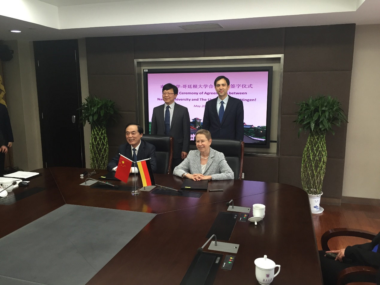 在会谈结束后,两校校长签署了两份合作协议,分别是《滚球买球的app官网-哥廷根大学经济学院合作备忘录》及 “关于工商管理硕士双学位项目”的《滚球买球的app官网-哥廷根大学合作意向书》。滚球买球的app官网副院长于津平教授、哥廷根大学经济学院教授Fabian Froese教授参加以上会谈并见证了签字仪式。