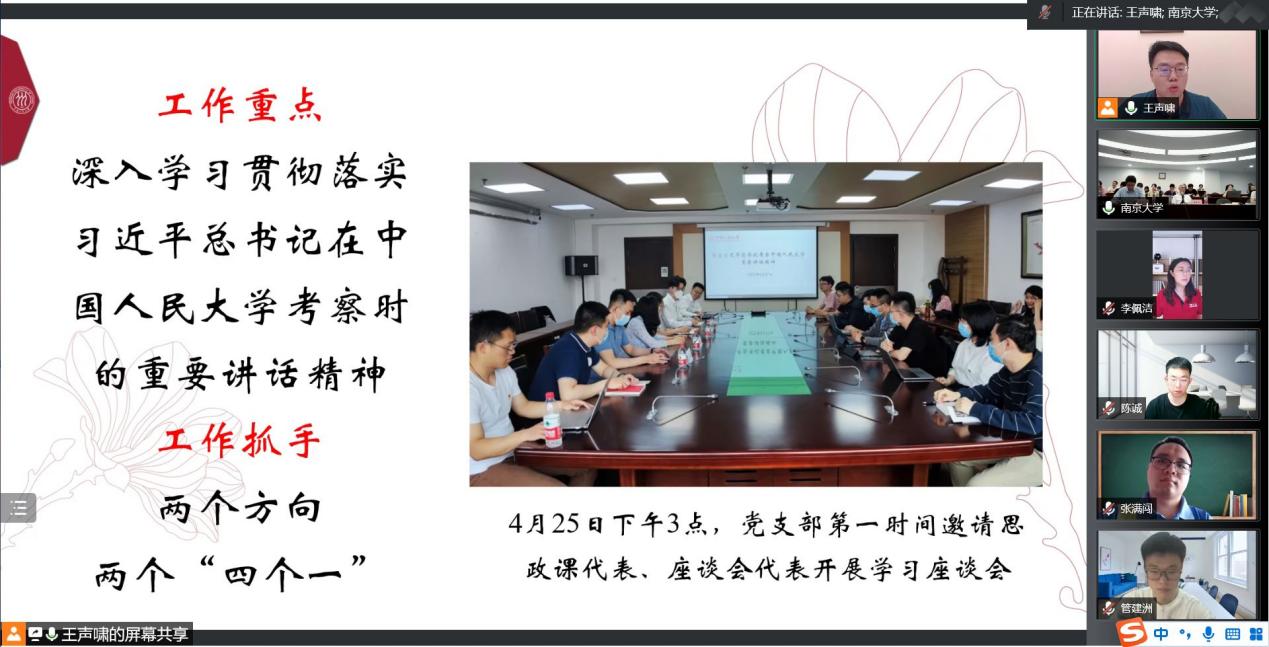 两位博士生党支部书记闫佳敏和王声啸分别介绍了其所在支部的基本情况和建设经验。习近平总书记与中国人民大学师生代表座谈会的参会代表、中国人民大学政治经济学博士第二党支部陈诚领学习近平总书记在中国人民大学考察时的重要讲话精神,滚球买球的app官网经济博士第一党支部李文辉领学习近平总书记给滚球买球的app官网留学归国青年学者的重要回信精神。