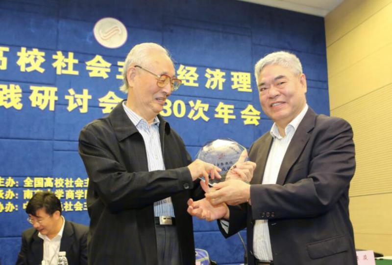洪银兴教授为研讨会终身成就奖获得者及获奖者代表颁奖,表彰老一代学者为研讨会做出的卓越贡献。