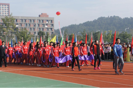 2016年11月4日早晨,空气中还夹杂着秋露的清凉,参加入场式的师生早早地在篮球场集合,进行上场前最后一次排练。九点左右,随着主持人的介绍,滚球买球的app官网方阵在全体辅导员老师的带领下,迈着整齐的步伐走入运动场。他们的入场式表演,以精心准备的剧情、热情奔放的肢体语言,描绘了“商小宝”的“夺冠”之路,用长丝带组合成的耀眼“商”字更昭示着滚球买球的app官网必将再创辉煌。动感的节奏和精彩的剧情,展现了滚球买球的app官网学子的青春活力,鼓舞着运动员们的斗志。